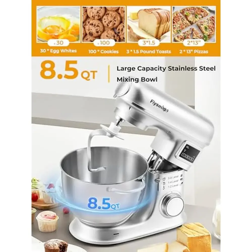 8-IN-1 Electric Kitchen Mixer 8.5 Qt Multifunctional Stainless Steel Bowl 660W 6 Speed Fermentation Tilt-Head